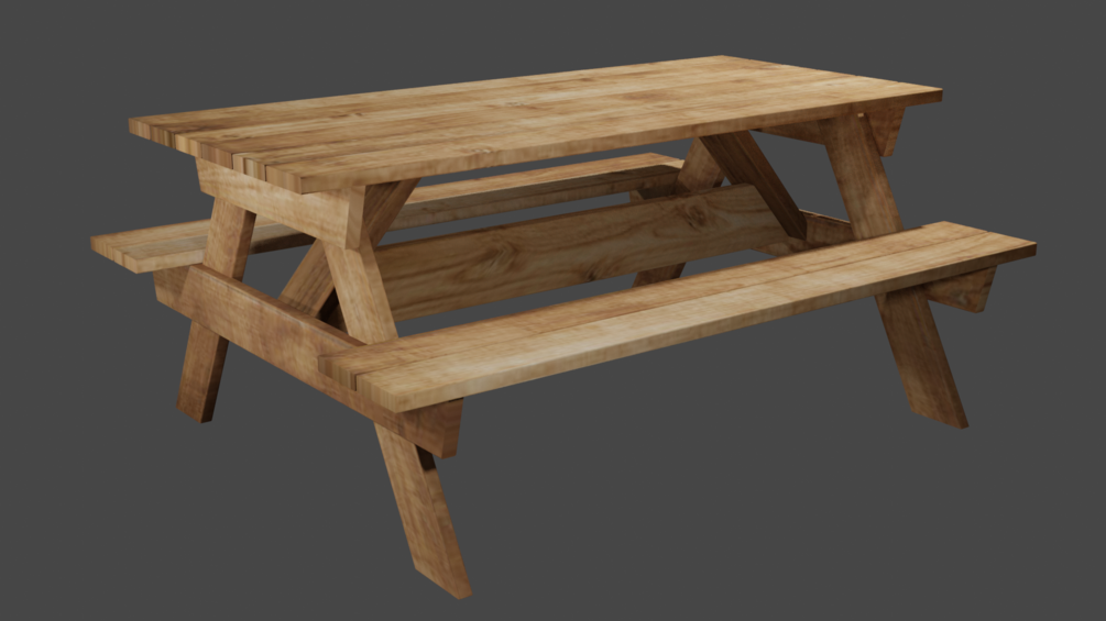 Rustic exterior wood furniture, simple image texture, low poly.